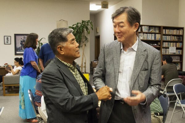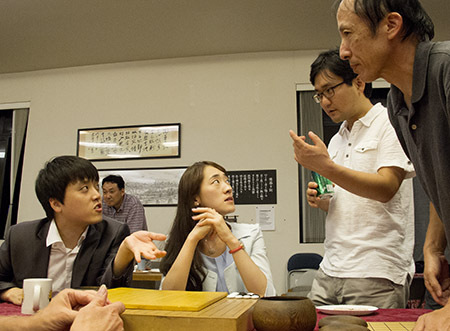 Early Tuesday night was slow at the Seattle Go Center, with only about 20 players, since so many members were at the U.S. Go Congress in nearby Tacoma. But then a meeting organized by Dae-won Suh, President of the Asian Go Federation, and former Korean Ambassador to the U.N., doubled the attendance, as Suh met with the leadership of the Center, including president Lee Anne Bowie, and local Korean players. Also attending from the U.S. Go Congress were three Korean professional players, and KBA General Manager Jong-Ryeol Kim. A reporter from the Korea Times, and staff from the Seattle Korean Consulate also attended.