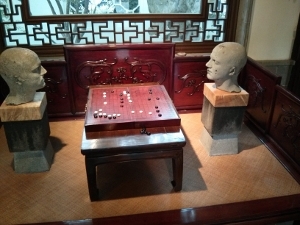 On the way to Tacoma for the US Go Congress last month, we stopped for a few days in Portland, OR. Among other places we visited the Lan Su Chinese Garden in downtown, claimed to be the most authentic Chinese garden outside of China. I had been here before - in 2008 while attending that year's US Go Congress. A few of the displays had changed in the intervening five years, including this scene in the Scholar's Study. According to the garden's tour, this is a place "where the men of the family studied for civil service exams that would ensure the family's prosperity. It served as a place of comfort for writing poetry, practicing calligraphy, reading and admiring art." Is the position on the go board viable? How strong were the players? You be the judge.