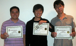 Photo: High Dan Division winners (l-r): Eric Kim, Yeong Cha, Oasiny Zhao; photo by Jeffery Kerlagon