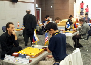 October 10-15. Korean student Park Jae-geun 6d, 17, took first place with a win over China's Li Fu 8d, 39, principal of the Haikou FuLi Go Training Center. The US representative, Hugh Zhang 7d, came in 16th place with five wins, his only loss being to the 4th place finisher from Hong Kong. Canada's Bill Lin came in a very strong 3rd place also with five wins and a loss, to the winner Park. The US player was seeded somewhat lower than Canada's because of mixed US results in prior years, according to tournament organizers. The tournament attracted 62 players from all over the world to the small industrial city of Gumi in the province of Gyeongbuk-do. Gumi was the birthplace of the late Korean leader Park Jeong-hee and benefited from a great deal of industrial development during his 1961-79 time in power, growing from a village to a major city with Samsung, LG and other factories.