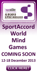 The 3rd SportAccord World Mind Games will be held in Beijing, China December 12-18. Contestants will compete for gold, silver, and