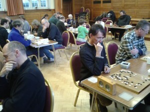 (BGA) gave 50-minute teaching sessions in rotation to three groups selected by grade, and in the afternoon each group played a Swiss tournament, while the teachers -- joined by Paul Smith 1d, who was escorting his young son Edmund to the event -- played a round-robin. For the teaching sessions, our correspondent "added a stone to the weak group"