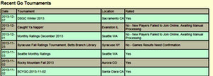 The Tournaments Ratings Status page, formerly available at the American Go Association Go Database (AGAGD), is