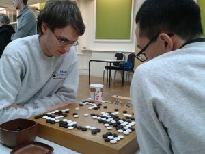 Playing for Oxford were alumni Matthew Macfadyen 6d and Alex Rix 2d and students Jiang Junnun 4d and Stephane Thao 4k (who was given three stones) and for Cambridge, alumni Andrew Simons 4d and Chris Bryant 1d and students