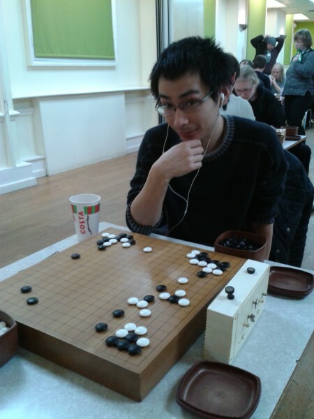 , a Chinese graduate of the University of Nottingham, with six wins. French visitors Benjamin Drean-Guenaizia 5d and Pierre Paga 4d took second and third place with six and five wins respectively and Briton Andrew Simons 4d, also on five wins, came fourth. Games were 90 minutes main time (60 if both players 20k or weaker), with Canadian (repeating) overtime of 20/5 and tie-breaks decided on
