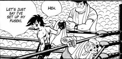 The manga isn't about go at all -- its about boxing -- but here Joe is in the middle of a brutal match and in danger of losing. His coach wants to take him out of the match but Joe uses the concept of fuseki to explain his plan.
