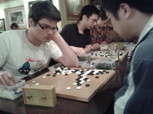 In this twice-yearly friendly tournament, teams of three - which ideally (but not necessarily or, in fact, often) have an international dimension - compete for a trophy donated by Kobayashi Yukata. It is organized by the Central London Go Club (CLGC) and this season was held at the Melton Mowbray pub in the ancient London street of Holborn(left). The pub is a go hub for London now, the permanent home of the London City Go Club (Fridays, 6p - 11p) and currently also housing the CLGC (Saturdays, noon - 11p). Click here for a photo album of the event from the Nippon Club's Tanaka Kiyohiko.