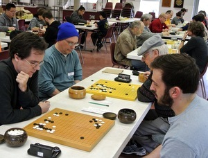 Bianchi swept his games in the C division, finishing one win ahead of Ryan Iffert and Kelvin Cheng. Theo Eckert-Budis 14k was the winner of the annual cake problem prize. Five C division players are first-year students in the weiqi class taught at the CNY Chinese School -- the youngest of these was 8-year-old Liya Luk 16k, who finished with a 2-2 record. The oldest tournament participant was again 96-year-old Milton Sack 15k, who won both of the games he played. "Special thanks to Slate and Shell for greatly discounting its new books for use as prizes at the tournament," says Syracuse Go Club organizer Richard Moseson.