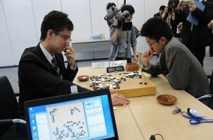 Globis is a Japanese venture-capital company that also provides educational services in business and management. It runs its own university, the Graduate School of Management, Globis University, and the main force behind its sponsorship is the college president, Hori Yoshito, a keen go player. Because of their outstanding results recently, the players from Korea and China were considered the favorites, especially Lian Xiao 7-dan of China, who won the 15th Agon Kiriyama Cup play-off with Japan last December. Local fans were surprised and pleased, therefore, to see two of the Japanese representatives make the final. One was Ichiriki Ryo (left), who was recently promoted to 7-dan for winning a place in one of the current Kisei leagues; the other was Kyo Kagen 2P, a Taiwanese-born player, who has been doing very well this year (he is top of the most-wins list at present, with a 23-4 record, including 17 wins in a row; Ichiriki is in second place with 20-2). Both Ichiriki and Kyo qualified quickly for the quarterfinals with two straight wins; one of the players falling by the wayside with 1-2 was Ida Atsushi, who is now challenging for the Honinbo title. Ichiriki beat Na Hyeon 4P of Korea in the quarterfinals and Lian Xiao 7P of China in the semifinals; Kyo first beat Li Qincheng 1P, then Xia Chenkun 3P, both of China. In the final, Ichiriki (black) beat Kyo by resignation after 155 moves. In the play-off for third place, Lian beat Xia. First prize is worth 3,000,000 yen (close to $30,000), second 500,000, and third 200,000. Tomorrow: Iyama Makes Good Start In Honinbo Title Defense; Kisei B League Starts photo (bottom left): Ichiriki Ryo 7 dan plays Kyo Kagen 2 dan at the 1st GLOBIS Cup; photo courtesy Go Game Guru.