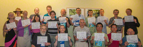 photo: 2013 go teacher workshop participants show off their certificates; photo by Phil Straus