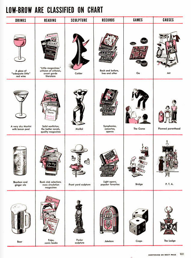 Go is classified as a “high-brow” game in a chart detailing “the best and worst of art and popular culture,” in a 1949