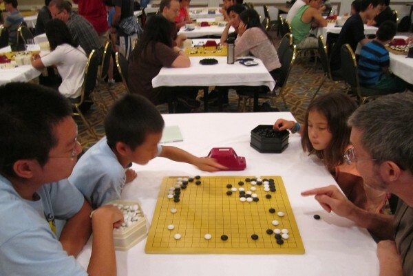 The Youth Room at the US Go Congress has been bustling all week, with over 100 kids and teens registered this year. Sunday drew scores of kids for Lightning Go, and 9x9 and 13x13 were very popular on Monday afternoon. Tuesday’s Youth Adult Pair Go featured 68 players, although several of them were Rengo (same sex pairs) instead of male-female. Many charming pairs were children playing with their parents, or strong players joining with younger siblings and relatives, even Andy Liu 1P got in on the action, playing with Alex Jiang 7k . After the day off break, Relay Go is planned for Thursday. The most popular event of the week, the Youth Team Tourney (where teams of three will compete in the same format seen in the Hikaru no Go manga) is set for Friday. Winners at all of these events have had their choice of a slew of great prizes: Hinoki Press generously donated a full case of each of their popular Heart of Go Series, all seven volumes, while Winston Jen donated both anime, and copies of the latest Japanese manga about go, Hoshizora no Karasu (Crow in the Starry Sky) - in the original Japanese, as it has not been translated into English. GoGameGuru donated both sets of stones, and copies of Speed Baduk Vol. 2. Youth Room directors Paul Barchilon and Fritz Balwit "have had our hands full, but are having a great time with the kids,” Balwit told the E-Journal.