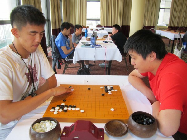 Bill Lin 7d and Aaron Ye 6d are the winners of the Redmond Cup, after a series of online matches, and then a live final at the US Go Congress. In the Junior Division (under 13) Ye, who has held the Redmond title for the past three years, made it clear he has no intention of giving up his title. He won all five rounds of the online qualifiers, and then cemented his status with two wins in a row against runner up Jeremy Chiu 6d, who lost on time in round 1 on Sunday, and then was defeated on the board again on Monday. Both boys are 12 years old. In the Senior Division (under 18) Bill Lin was undefeated in the six round qualifiers, but then stumbled in the first round of the finals, losing to two year reigning champ Jianing Gan 7d on Sunday afternoon. He came back fighting strong on Monday though, winning that round, and then claiming the title with a second win on Thursday. Matches from both divisions were broadcast live on KGS, and hundreds of viewers watched the games.