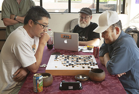 Photo: Dong Ma 6d plays Edward Kim 7d at the 17th Anniversary Tournament in 2012, with Dennis Wheeler recording the game. Photo/Report by Brian Allen.