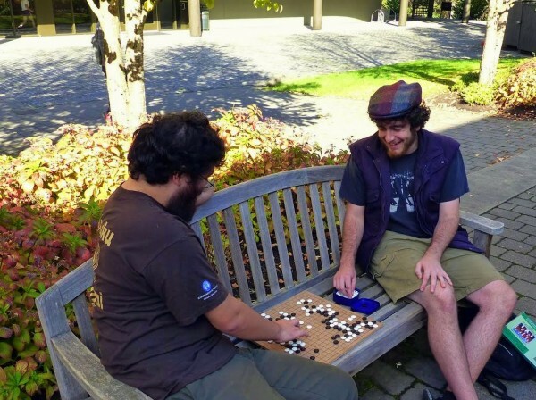 A second game was resolved by mathematical proof. At the end of the game, the score was a tie on the board, so white won by the half-point komi. (This was a "one stone handicap" game). Later, black discovered a stone on the floor that he claimed was a prisoner of his. Could it be determined if that stone came from this game? Another player argued that the tie on the board was impossible, given that there was no seki and both players played the same number of moves. Working with several players, the tournament director constructed a proof of this fact. If both players played the same number of moves, the total number of stones on the board (after filling prisoners into territory) must be an even number. Since there are 361 points on the board, the total amount of territory (i.e., the number of vacant points) must be odd. Both players therefore cannot have the same score, so a stone did disappear from this game. White bowed to this logic and the result was reversed. The tournament was held October 18-19 on the picturesque campus of Lewis & Clark College in Portland, Oregon. 32 players participated. The winners, from first to third in each division, were: Open division: Kaichi Suzuki (5-0), Boyang Chen (founding the University of Oregon Go Club), Xudong Zhao Dan division: Ben Hakala, Maxwell Chen, Troy Wahl Single-digit kyu division: Daniel Takamori, Sam Levenick (president of the Lewis & Clark Go Club), Robert O'Malley Double-digit kyu division: Ethan Zhuang (5-0), Roger LaMarche, Vivienne Blandy Top youth player: Ethan Zhuang Top female player: Vivienne Blandy The tournament director wishes to thank Yellow Mountain Imports for a discount on prizes, GoClubs.org for their outstanding tournament software, the Lewis & Clark College Go Club for access to the rooms, and the various volunteers who brought boards, snacks, etc. - Peter Drake, TD