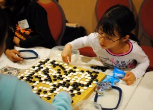 For the past two years, TCGO has been a part of a retreat weekend at a local hotel that brings together families from the Midwest region. Earlier this month, TCGO’s Xiaoyu Wang, Yanqing Sun and Aaron Broege attended the event to teach the children the basics of capture go. “Like last year, many of the children were eager to learn and picked up the rules very quickly,” says Broege. “To my delight, some of them even remembered us from the previous year and still remembered the basic rules of the game!” Some of the children picked up the rules quickly, and played game after game of capture go. Others, even if they didn't completely understand the rules, still loved the feel of placing the stones on the board. “It was just great to see them playing with the game and trying to figure out how to win.”