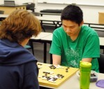 on the edge of the Mississippi river. “It was a picturesque autumn day – clear skies and a slightly crisp feeling in the air - the trees at the peak of their color, with bright yellow leaves carpeting streets and walkways around campus,” reports Aaron Broege. The event began at 9am and lasted until 4 pm. Fifteen AGA members, ranging from 21k to 4d, participated in the rated games day.