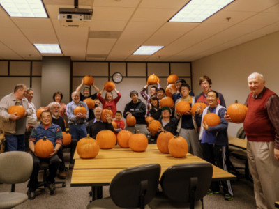 communication” between him and NOVA Club President Gary Smith that found them both turning up with armfuls of pumpkins. In the end, every attendee, including visitors, left the George Mason Law School in Arlington VA with a grand pumpkin.
