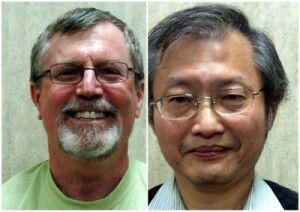 The Davis/Sacramento Go Club held its Winter Tournament on December 6th at the Arden-Dimick library in Sacramento. There were 14 players, including three who were playing in their first AGA tournament: Clete Reader, Laura Sparks, and Barry Stiefel. Jeff Horn 1D (left) won the upper division and Tai-An Cha 5k (right) won the lower division, both with 3-1 scores. - Willard Haynes