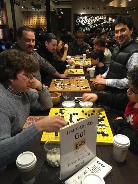 president Mark Rubenstein. "We started meeting at the new Starbucks in downtown Evanston (IL), and the response has been fantastic. Customers are showing an interest in the game, and we're teaching more beginners than ever! This week I was setting up a board and stones at an empty table. I went to get my opponent, and when I returned I saw that two college students had sat down at the board and started playing Go Moku. They didn't even know about the club!" Check out the