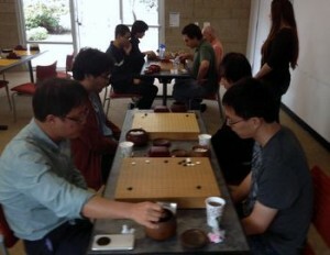 For the fourth year in a row, the San Diego Go Championship went to a UC San Diego student. This year, it was Leran Zou 7d who won the Open section with the only undefeated record of 3-0. Tying for second place were Paul Chen, Seth Cardew and Jerry Cheng, president of the UCSD Go Club. Twenty-nine players showed up on Sunday, April 19 at UCSD to compete for the 2015 San Diego Go Championship. The event was organized by the combined efforts of the UCSD Go Club, the SDSU Go Club and the San Diego Go Club. The tournament Director was Evan Cho, 9-dan who runs the go school in Arcadia and also the new Atari Go club. In the Kyu section, Paul Margetts, 3-kyu visiting from England, won with a 3-0 record. The only other undefeated player in the kyu section was Stephen Zhu, 22-kyu, at 2-0. There were four members of the Margetts family in the kyu section, all playing under a family membership in the British Go Association.