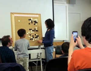 Nearly two dozen players ranging in age from single digits to the 70's attended Jennie Shen's weekend workshop in Portland, OR the weekend of April 18-19, including four children, a high schooler, three college students, and Haskell Small all the way from Washington, DC. Small, who organized the first US Go Congress, was in town for the opening performance of one of his compositions in Portland. Thanks to Bill Corry, food, Glen Peters, equipment beast of burden, Peter Drake for hosting us at Lewis and Clark College, and most of all, Jennie Shen our excellent teacher and good friend. - Peter Freedman