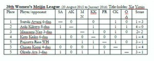 In a game played on November 26, Chinen Kaori 5P picked up her first win. Pla