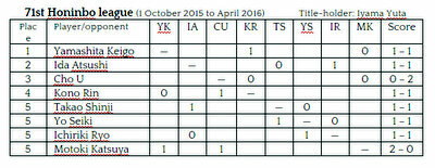 and league newcomer Motoki Katsuya 7P (W) beat Yamashita Keigo 9P, the top-ra