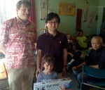 took top honors by going 3-0 in the one-day tournament, beating fellow Korean visitor Seunghee Ryu 7d in the final. Ryu and Kim were the strongest of a strong “Espresso” section; eight of the 48 competitors were 5d or stronger. Other 3-0 winners were Tyler Oyakawa 3d in the Java Section, Jeff McLellan 4k in the Mocha Section, Greg Kulevich 8k in the Latte Section and Jeremy Cook 17k and Ryan Kim 23k in the Decaf section. In addition to hand-painted mugs and tiles for first through fourth place, winners and placers got bags of organic Peruvian light-roast coffee ground and packed by owner Pam Stollings of the UnUrban Coffeehouse. Players with no wins received a portable go board courtesy of the Korean Baduk Association as a consolation prize. TD Joe Cepiel also awarded one of the KBA boards to the youngest player attending, six-year-old Oliver Williams
