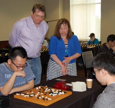 observing an Open Masters game Tuesday with AGA president Andy Okun; photo by Chris Garlock