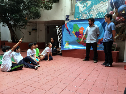 Myungwan Kim 9p fields questions on September 2 from students at Pippiolo in Mexico City, where instructor Siddhartha Avila (to his left) teaches as part of a very successful curriculum for preschool and elementary school children. One asked Kim who his strongest three opponents have been, and when he answered Lee Changho, Lee Sedol and Cho Hoon Hyun, the kid immediately said "Have you played Gu Li?!"- report/photo by Steven Burrall