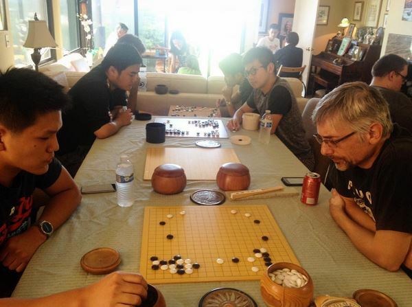 The fifth annual Fall Go Soiree at the home of San Diego Go Club president Ted Terpstra drew over 35 go players. Players from the SD Go Club, UCSD Go Club, SDSU Go Club, Carlsbad Coastal Go Club and even the Santa Monica Go Club came together for a day of self-paired games on Saturday, October 10. After five hours of playing go, the crowd took a pizza break (funded by the