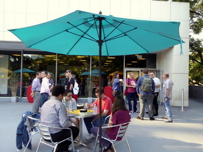 photo: awaiting Round 1 pairings Saturday morning on the patio at the LA Center, just outside the Strong Players Room; report/photos by Chris Garlock