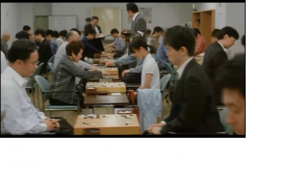 games in the movie were realistic, and there is a scene about 36 minutes into it that shows pros playing in what looks like elimination rounds for a hayago tournament. In this scene the main character is playing against Matsumoto Takehisa 7P. Takemiya Yoko 5P poses as a TV analyst for a game later."