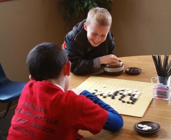 Olin Waxler, in go, and Caden Rice, in chess, took top honors at a three school chess and go tourney in Portland, OR on Jan. 16, reports organizer Peter Freedman. Nineteen children participated, 8 playing go and 11 playing chess. Waxler, of Beverly Cleary Elementary, had a 3-0 record - taking first place in go for the third consecutive tournament. In second was Mason Bonner, Irvington, 2-1; Third, Oliver Kuerbis, Irvington, 1 ½ -1 ½ (one game was judged a tie by the tournament director). Caden Rice, Richmond, took the first place trophy in chess, with Dylan Nakaji, Richmond, taking second and Ai Rose, Richmond, taking 3rd. "Richmond continues its dominance in chess, and no one seems able to beat Olin in go. Irvington continues to show well in go," adds Freedman. To add to the festivities, kids received snack packs of black and white mm’s as a door prize. - Paul Barchilon, E-J Youth Editor. Photo by Peter Freedman.