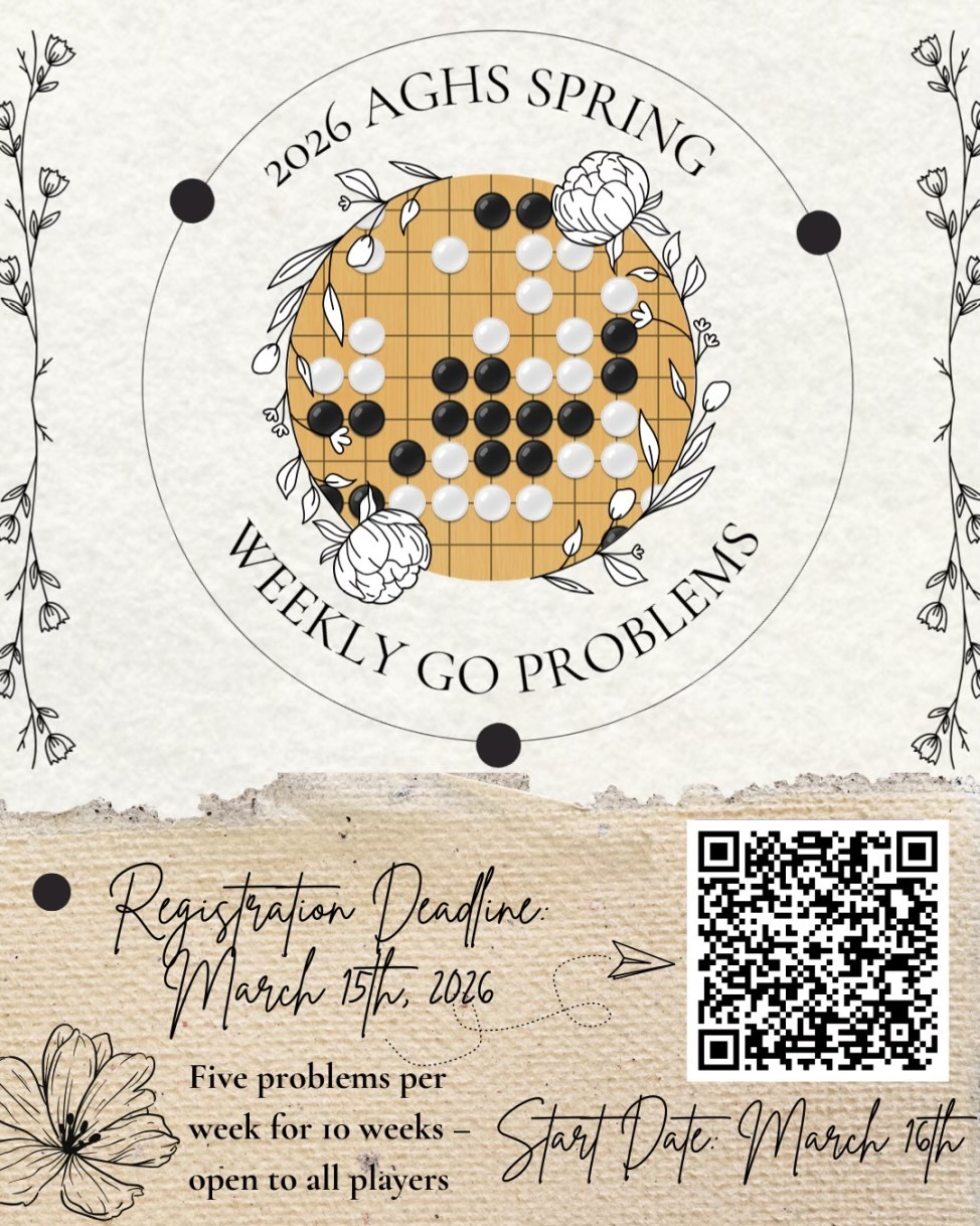 What it is: The AGHS Go Academy is a free 10-week introductory program designed for beginners. High-dan AGHS officers will guide participants through the fundamentals of Go, providing structured lessons and hands-on practice.